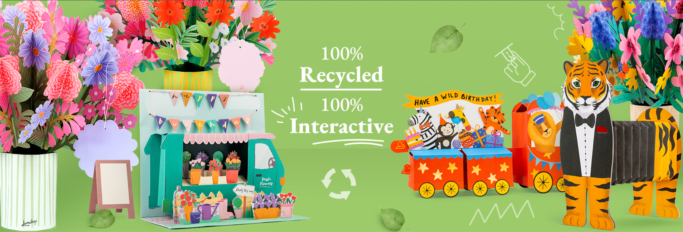 Our Pop Around cards are crafted from 100% recycled paper and are fully recyclable - just pop them into your regular cardboard recycling bin!