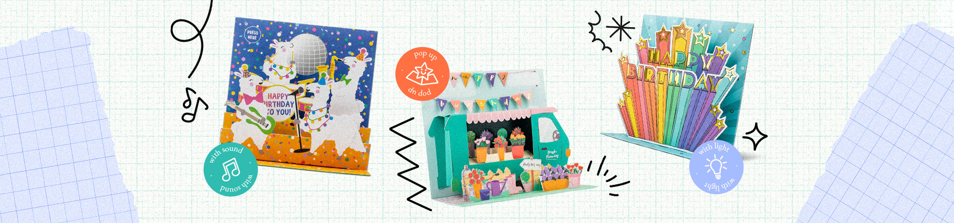 We create really special greeting cards with complex pop ups, lights and music. Each of our designs is an interactive, multi-sensory experience.