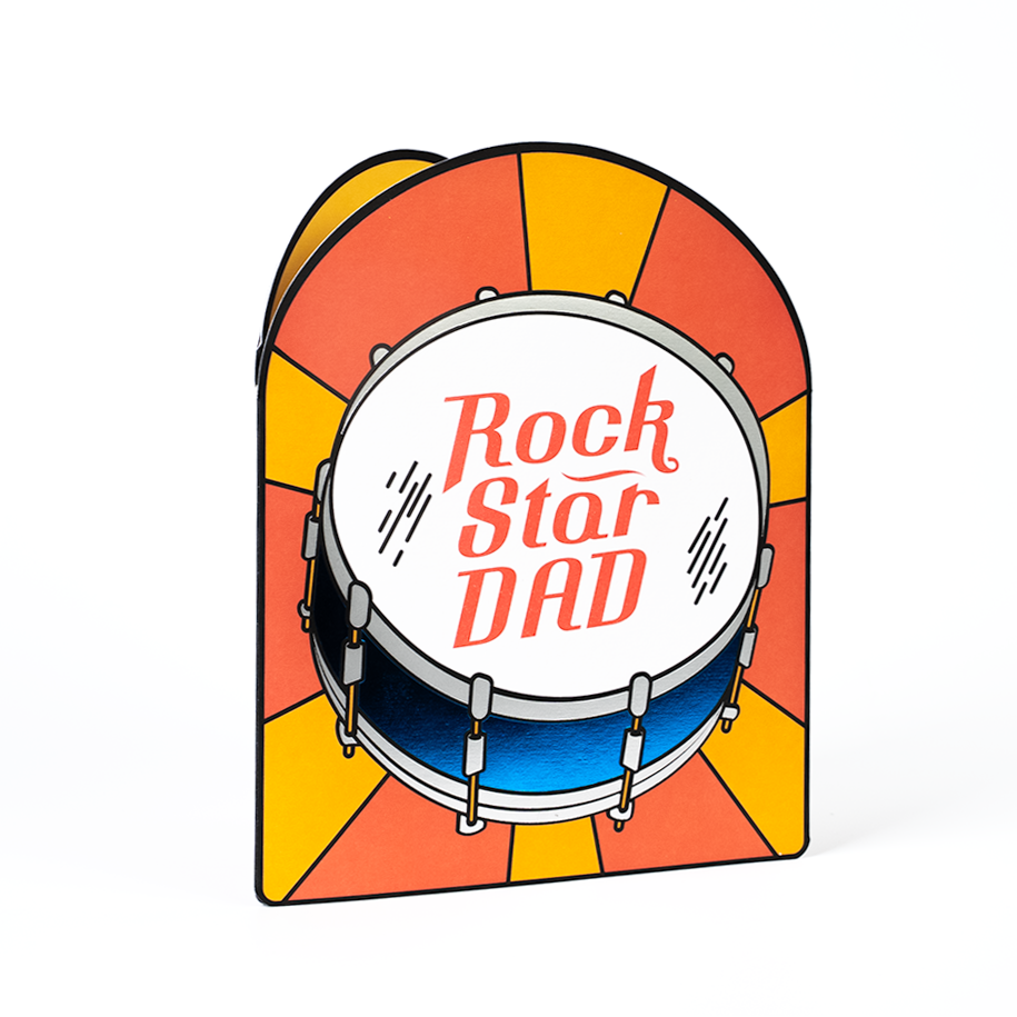 🎸 Caption (front) reads "Rock Star Dad" and inside reads "Rock out to your very own drum solo".